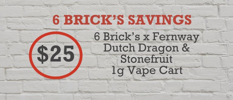 Home / Specials / $25: 6 Brick’s x Fernway – Dutch Dragon & Stonefruit 1g Cart